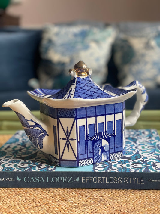 Vintage Blue & White 'Burleigh' Pagoda Teapot