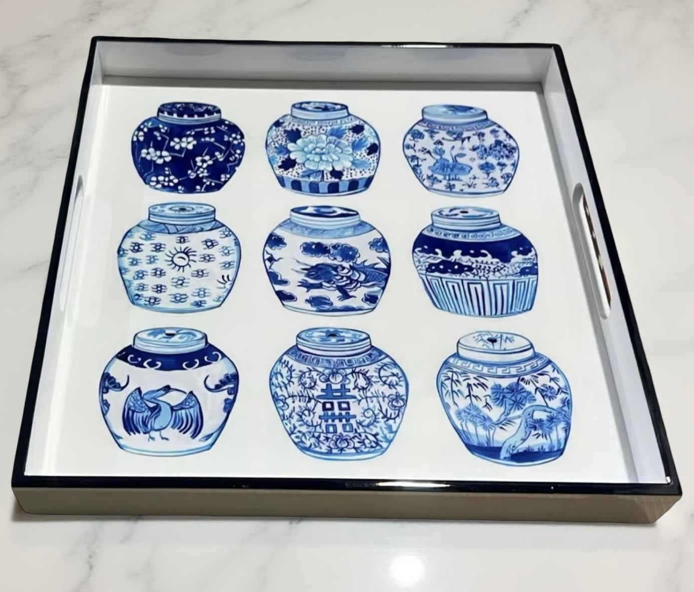 This beautiful decorative lacquer tray features our exclusive Ginger Jars design.